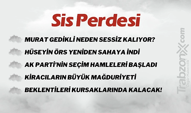 Trabzon MHP Ortahisar İlçe Başkanı Murat Gedikli’i görevden almak için çaba sarf eden İl Başkanı Ömer Ayar, yeni başkanı mevcut Ortahisar yönetiminden seçmek istiyor. Amacı yönetimi ikiye bölüp 6 ay sonra yapılacak olan il başkanlığı seçiminde Ortahisar delegelerini tarafında çekmek. Fakat teklif götürdüğü bütün isimlerden olumsuz cevap aldı. Murat Gedik’i bırakmayacaklarını ifade ettiler. Muta Gedikli de 6 ay sonra yapılacak genel kurulda İl Başkanlığı’na adaylığını koymayı düşünüyor. MHP delegelerinin büyük bir kısmını elinde bulunduran Gedikli herhangi bir polemiğe girmeyerek, kendisine yapılan bu operasyonun hesabını sandıkta görmeyi planlıyor. Bu yüzden de herhangi bir açıklama yaparak hem kendisini yıpratmıyor, hem de ileri de rakibi olacak olan Ömer Ayar’ın hata yapmasını bekliyor.