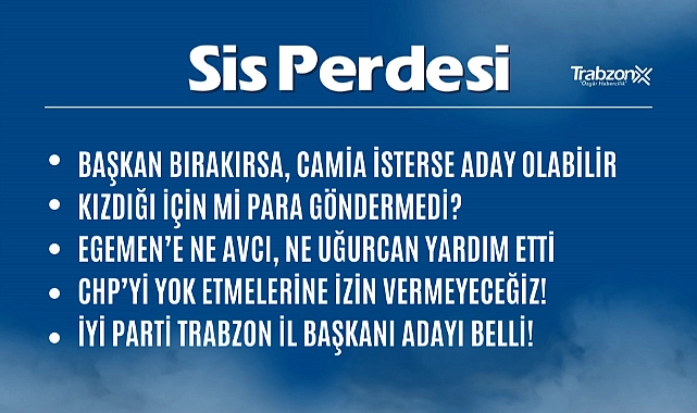 Trabzon İYİ Parti İl Başkanı kim olacak sorusu günlerdir Trabzon’da konuşulan konuların başında geliyor. Basında ve kamuoyunda birçok isim gündeme gelmiş fakat bu isimler başkanlık için niyetlerinin olmadığını dile getirmişlerdi. Aslında İYİ Parti Genel Merkezi’nin bir isim belirlediği bu ismi sır gibi sakladığı öğrenildi. 3 Aralık’ta yapılacak olan Ortahisar Merkez İlçe Başkanlığı seçimi sonrasında kamuoyunun karşısına çıkacak olan bu ismin, herkesi kucaklayacak ve partiyi seçime hazırlayacak kişi olduğu ifade edildi.
