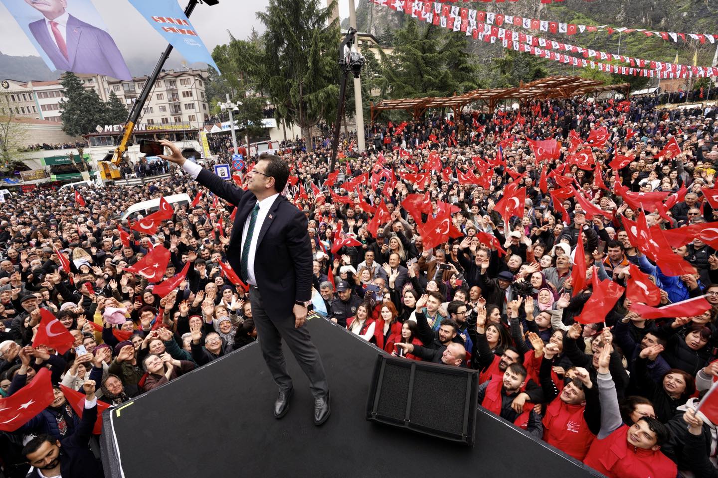 CHP Genel Başkan Yardımcısı Seyit Torun, Millet İttifakı’nın Amasya milletvekili adayları, Altılı Masa’nın Amasya il başkanları ve belediye başkanlarının eşlik ettiği İmamoğlu, Anıt Meydanı’nda düzenlenen “Halk Buluşması”nda konuştu. İmamoğlu, yağmura rağmen alanı dolduran vatandaşlara özetle şunları söyledi: