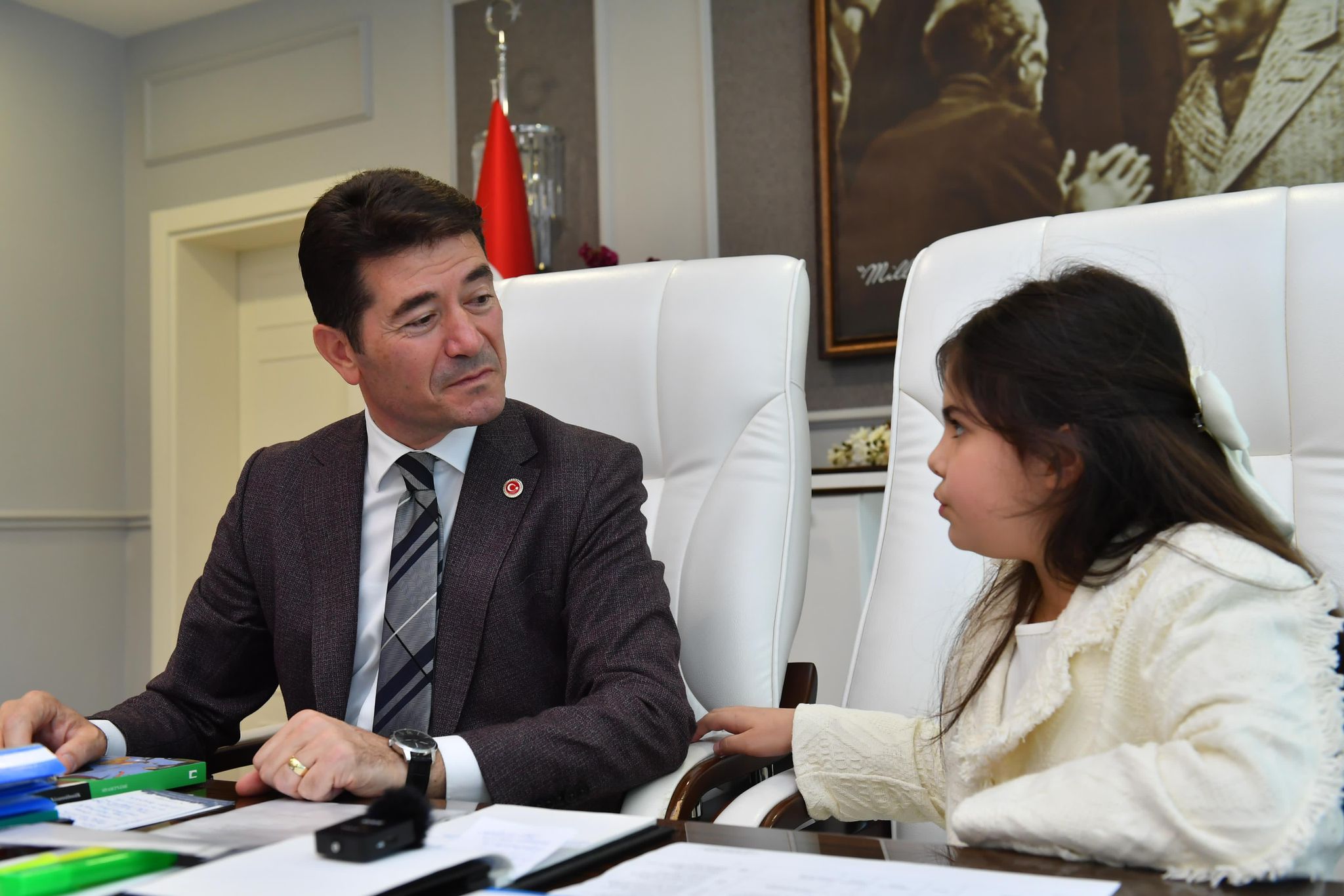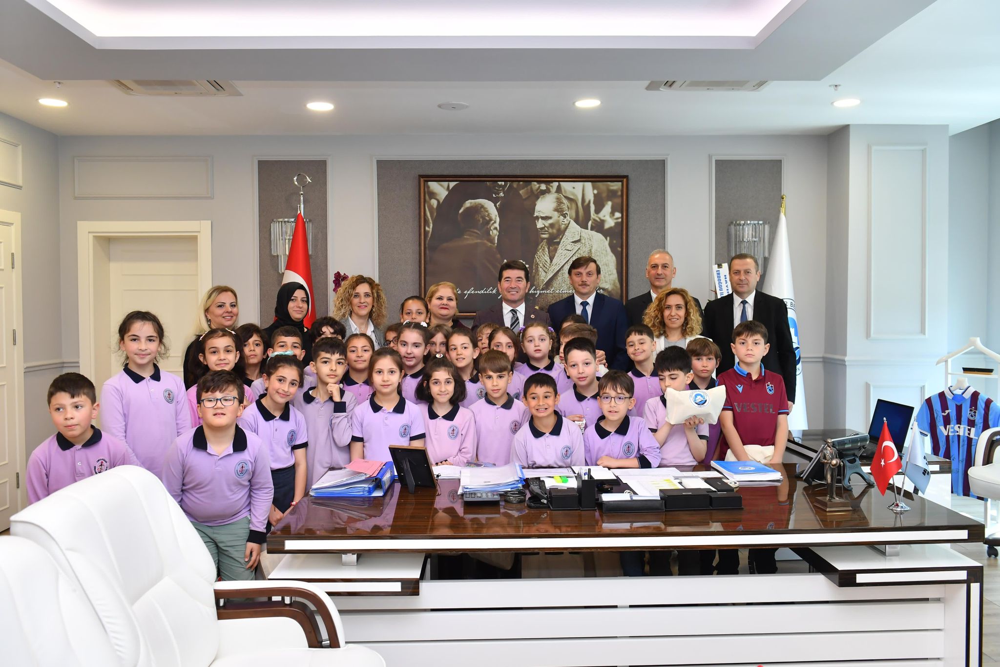 Ortahisar Belediye Başkanı Ahmet Kaya, 23 Nisan Ulusal Egemenlik ve Çocuk Bayramı dolayısıyla koltuğunu Erdoğdu İlköğretim Okulu 3. Sınıf öğrencisi Asel Duruk’a devretti.