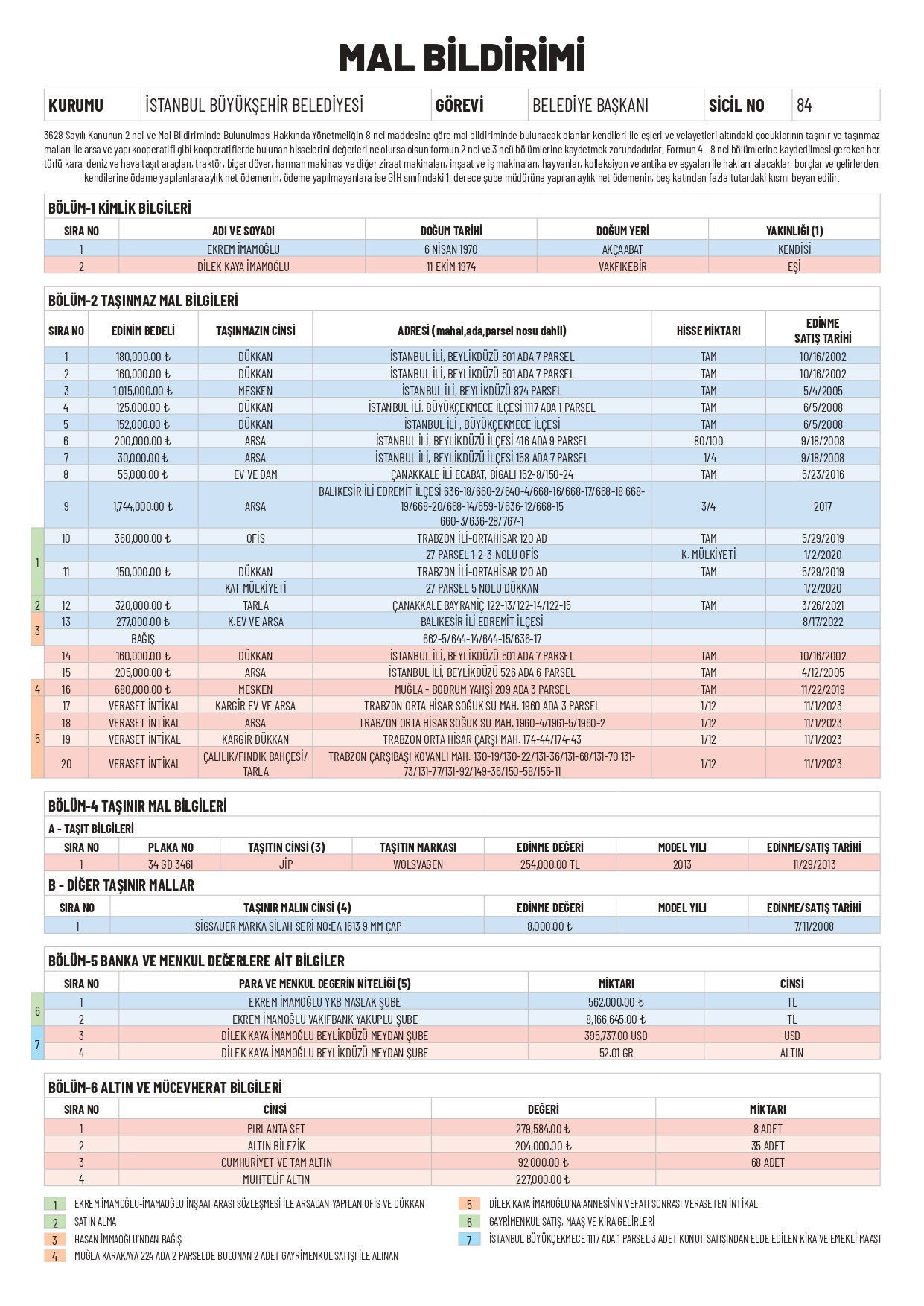 İstanbul Büyükşehir Belediye (İBB) Başkanı Ekrem İmamoğlu, mal varlığı bildiriminde bulundu.