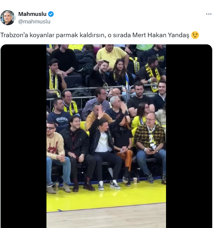 Fenerbahçeli futbolcu Mert Hakan’a Fenerbahçe Basketbol maçında bir grup tarafar müsvettesi, “Trabzon’a k…..lar parmak kaldırsın” şeklinde tezahürtta bulundu. Fenerbahçe’nin insanlıktan nasibini almamış eski yöneticisi (!) Mahmut Uslu’da bu videoyu sosyal medya hesabında paylaşarak, “ Trabzon’a k…lar parmak kaldırsın, o sırada Mert Hakan Yandaş” camiasına şirin gözükmeye çalıştı.