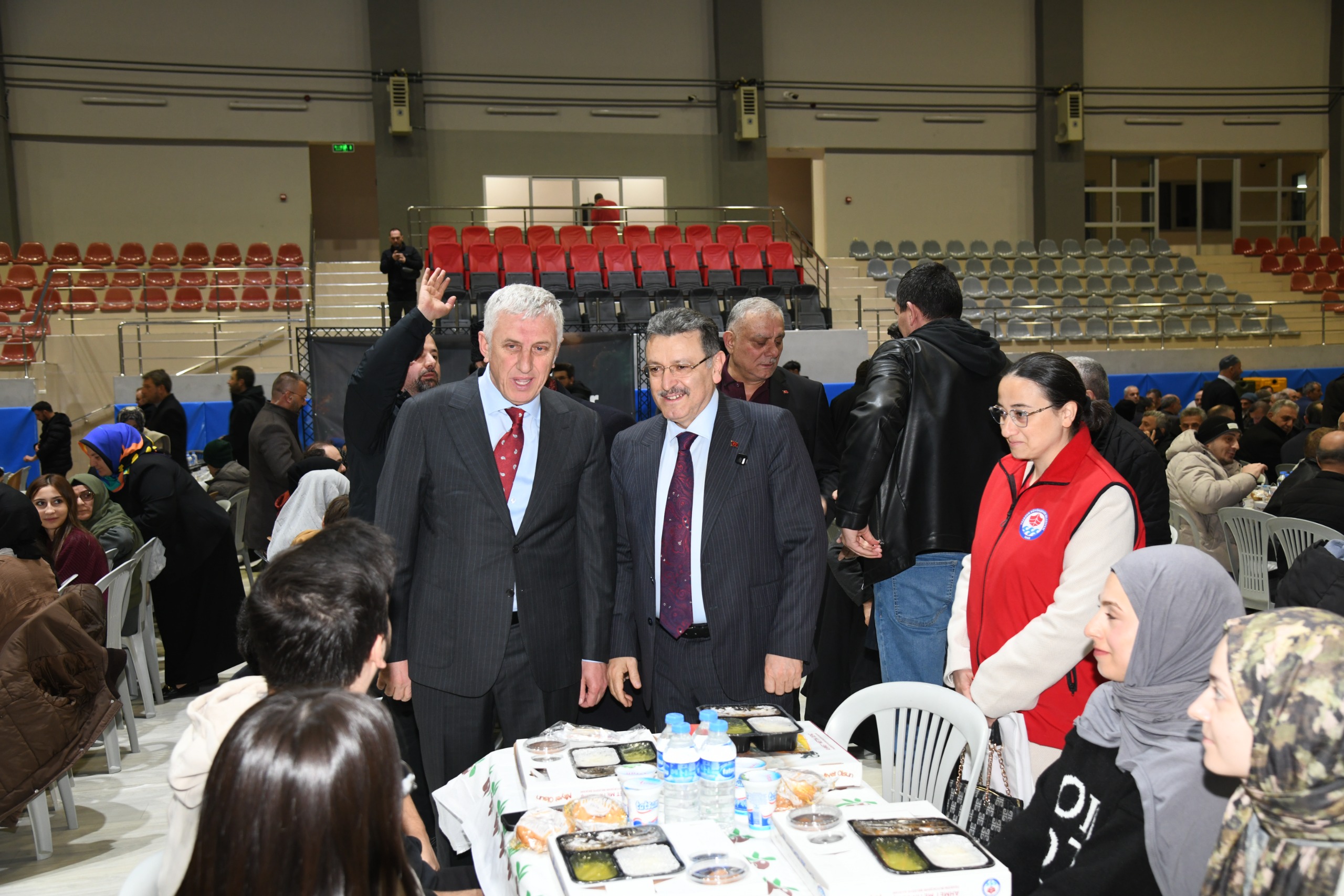 AK Parti İl Başkanı Sezgin Mumcu’nun da katıldığı iftar programında vatandaşlarla oruç açan Başkan Genç, "Bugün güzel ilçemiz Of’umuzdayız. Kutsal topraklardayız ve mübarek Ramazan ayını idrak ediyoruz. Cenab-ı Allah yaptığımız ibadetleri, tuttuğumuz oruçları kabul eylesin. Ramazan ayı sadece ibadet ayı değil, aynı zamanda birliğimizi, beraberliğimizi, kardeşliğimizi ve dayanışmamızı güçlendirdiğimiz müstesna bir zaman dilimidir. Biz de bütün ilçelerimizde olduğu gibi Of’umuzda da kıymetli hemşehrilerimizle bir araya gelerek aynı sofrayı paylaşmanın mutluluğunu yaşadık. İnşallah Ramazan’ı en güzel şekilde tamamlayıp bayrama da sağlık ve huzur içerisinde ulaşmayı Rabbim bizlere nasip eder” dedi.