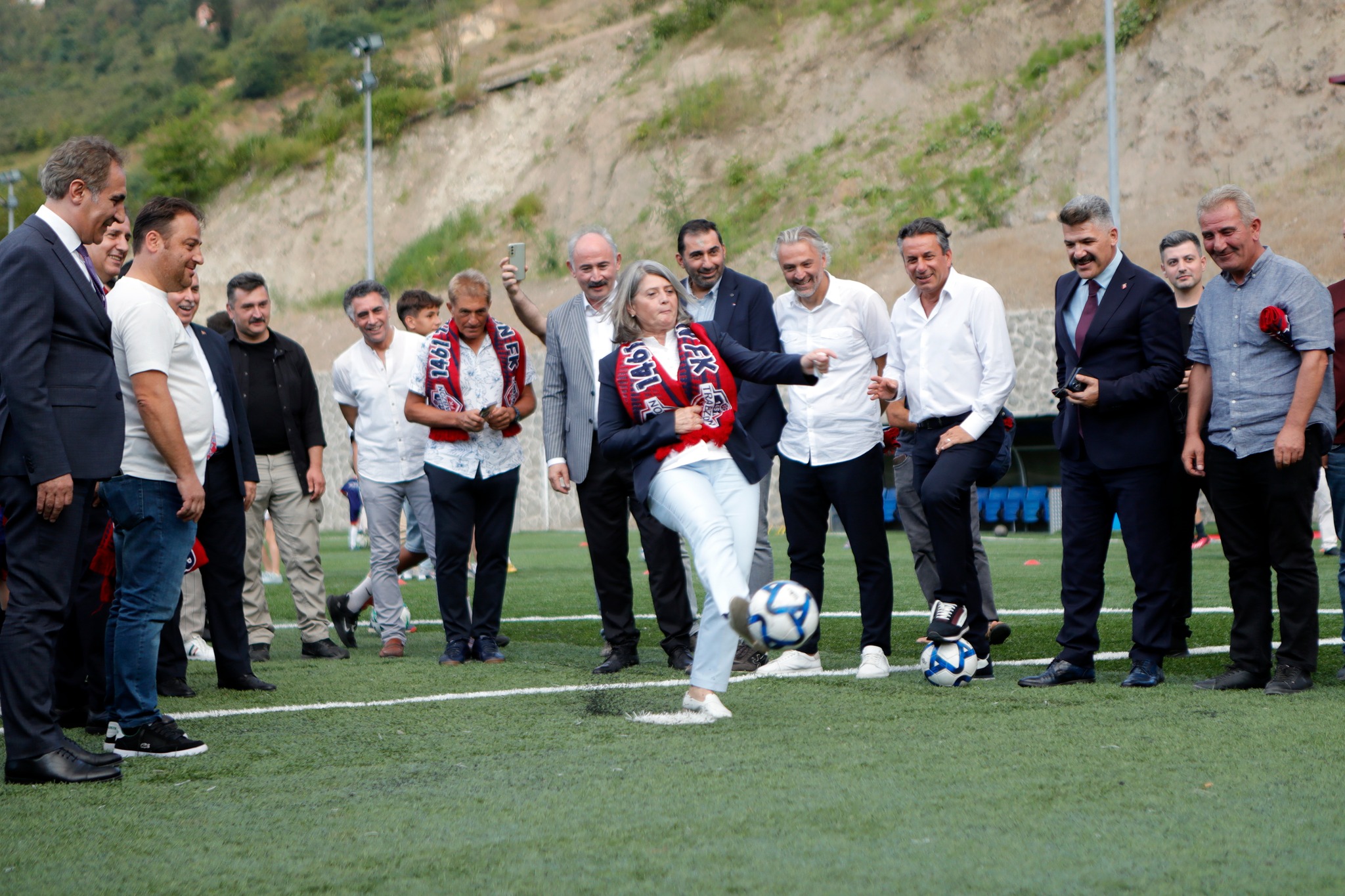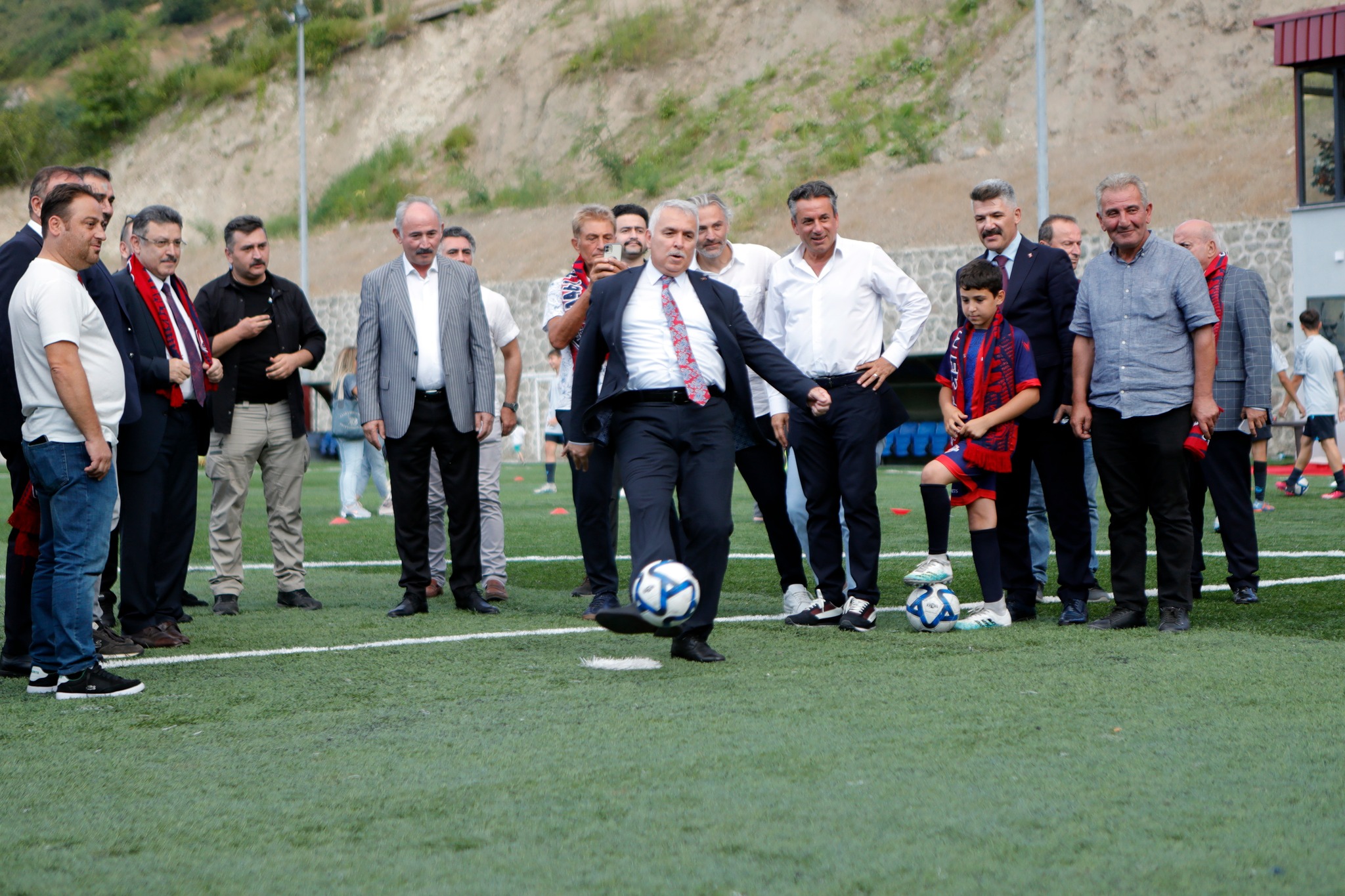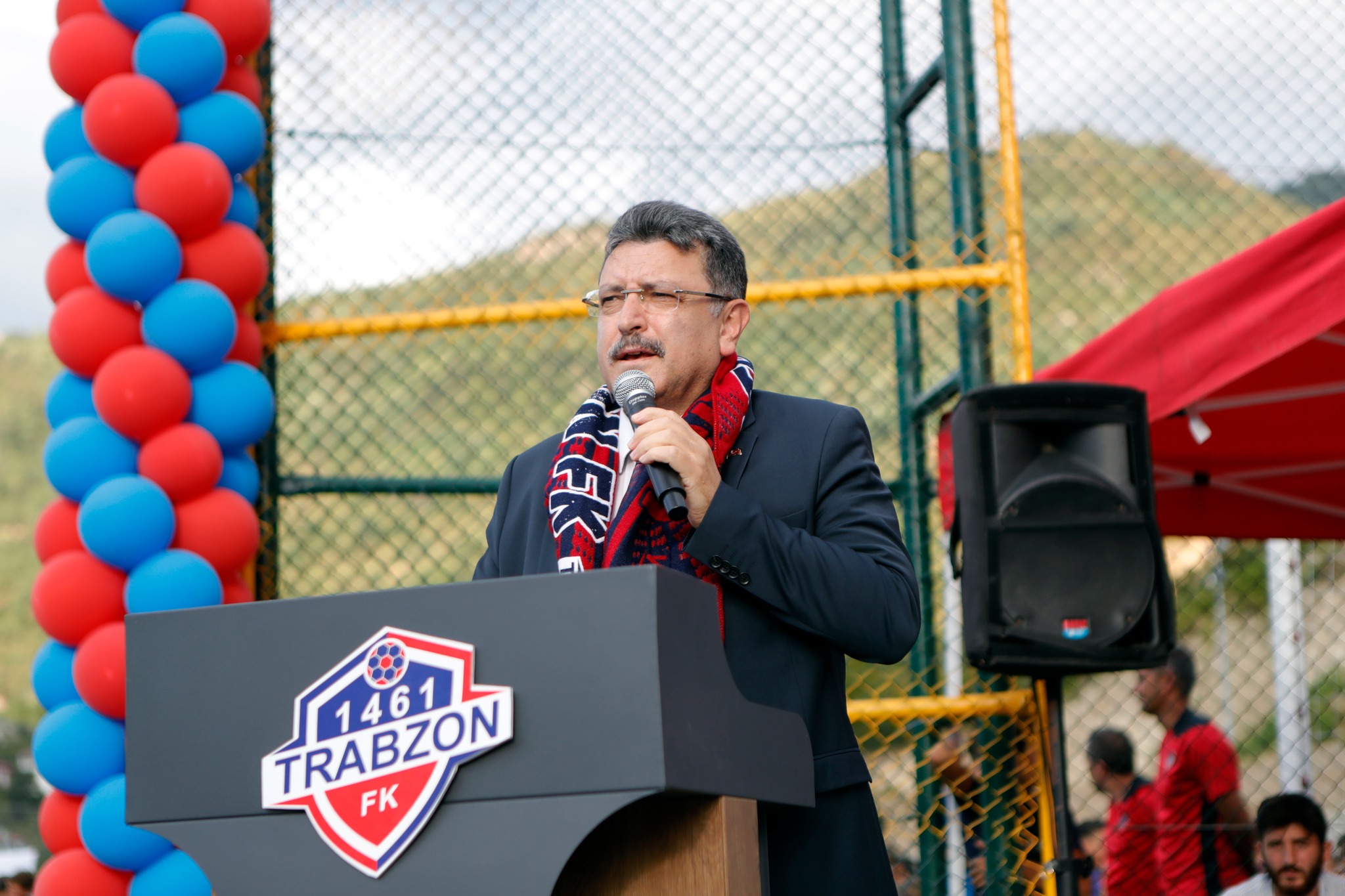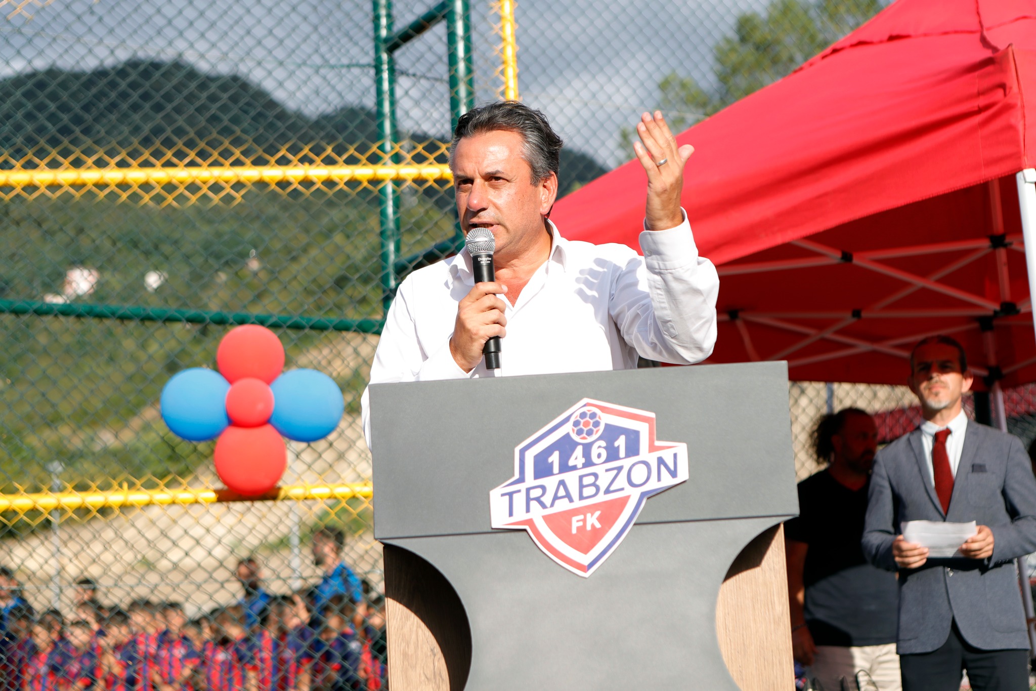 Açılış konuşması yapan Celil Hekimoğlu, tesisin yapımında kendilerine katkı sağlayan herkese teşekkür ederek, “Trabzon Büyükşehir Belediyemize bu arsayı bize 10 yıllığına tahsis ettiği için teşekkür ediyorum. Trabzonspor’un da bize büyük katkıları oldu. Sahayı yaparken kum lazım sadece Tokat’ta var. Zeyyat beye dertleniyordum, Trabzonspor sahadaki hibriti kaldırmıştı, bize verdi kumu. Ayrıca A Takımımıza 6 oyuncu verdiler. Başkan Ertuğrul Doğan nezdinde yönetime teşekkür ediyorum. Ulaştırma Bakanımıza teşekkür ediyorum, aradı desteklerini iletti. Kolay değil burası heyelan sahası arazi, alt tarafta 12 metre yüksekliğinde duvar yaptık. Sadece duvar 15 milyon TL, diğerini söylemiyorum. Burada futbolcu yetiştirip sunmamız lazım. Mahallemizin muhtarı da bize çok destek oldu ona da teşekkür ediyorum. İnşallah buradan futbolcu yetiştirip Türk futboluna sunacağız” dedi.