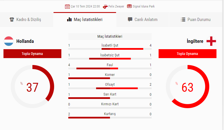 HOLLANDA - 1 İNGİLTERE - 2