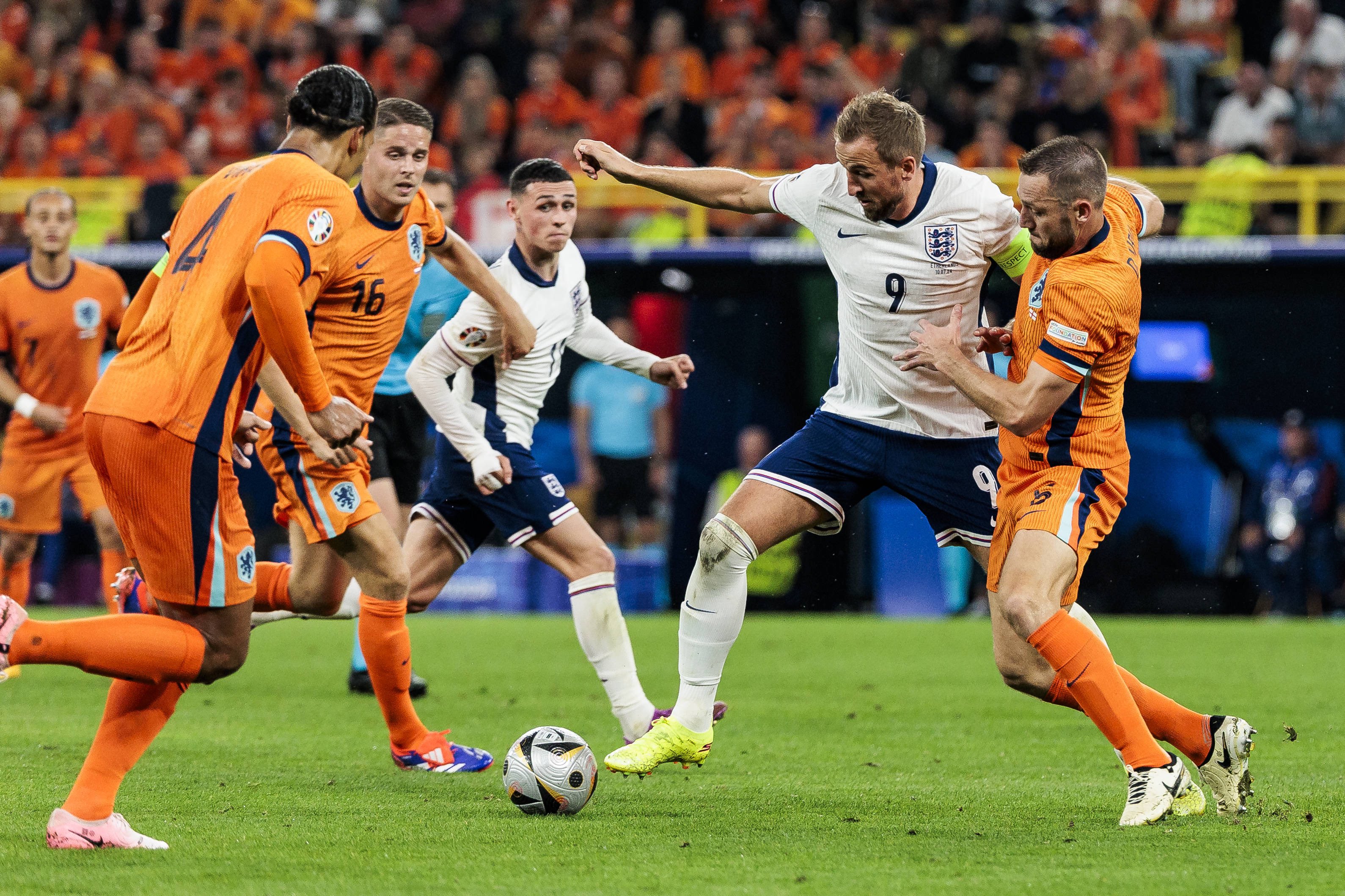 D Grubu'nda Fransa, Avusturya ve Polonya ile mücadele eden Hollanda, 1 galibiyet, 1 beraberlik ve 1 mağlubiyetle 4 puan topladı ve en iyi grup üçüncüleri arasında son 16 turuna yükseldi. "Portakallar", son 16 turunda Romanya'yı 3-0 yenerek çeyrek finale yükseldi. Çeyrek finalde Türkiye karşısında 1-0 geriye düşen Hollanda, ikinci yarıda bulduğu gollerle maçı 2-1 kazandı ve yarı finale çıktı.İngiltere, Danimarka, Slovenya ve Sırbistan'ın yer aldığı C Grubu'nu 5 puanla lider tamamlayarak son 16 turuna yükseldi. İngilizler, son 16 turunda Slovakya karşısında 90+5. dakikada Jude Bellingham'ın golüyle skoru eşitledi ve uzatmalarda Harry Kane'in golüyle çeyrek finale çıktı. Çeyrek finalde İsviçre'yi normal süresi ve uzatmaları 1-1 biten maçta penaltılarla geçerek yarı finale yükseldi.