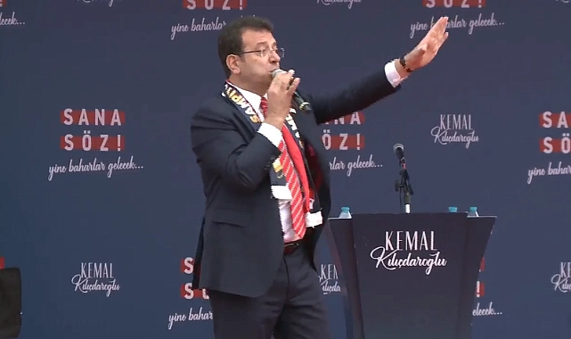 İlk olarak kürsüye çıkan Ekrem İmamoğlu, mitinge katılanların hazırladığı pankartlarını okudu. "Enişte" yazan bir pankartı okuyan İmamoğlu, "Eşimin memleketinden gelince mecburen o tarafa bakmak zorunda kaldım, biraz hanımcılık var ruhumuzda" dedi. Mitinge katılanların tezahüratları üzerine ceketini çıkaran İmamoğlu, "Ceketi mi çıkarayım, öyle daha mı güzel oluyor? Haydi çıkarayım, ben 6 Mayıs'ta çıkardığım o ceketi zaten hiç giymedim" diye konuştu.