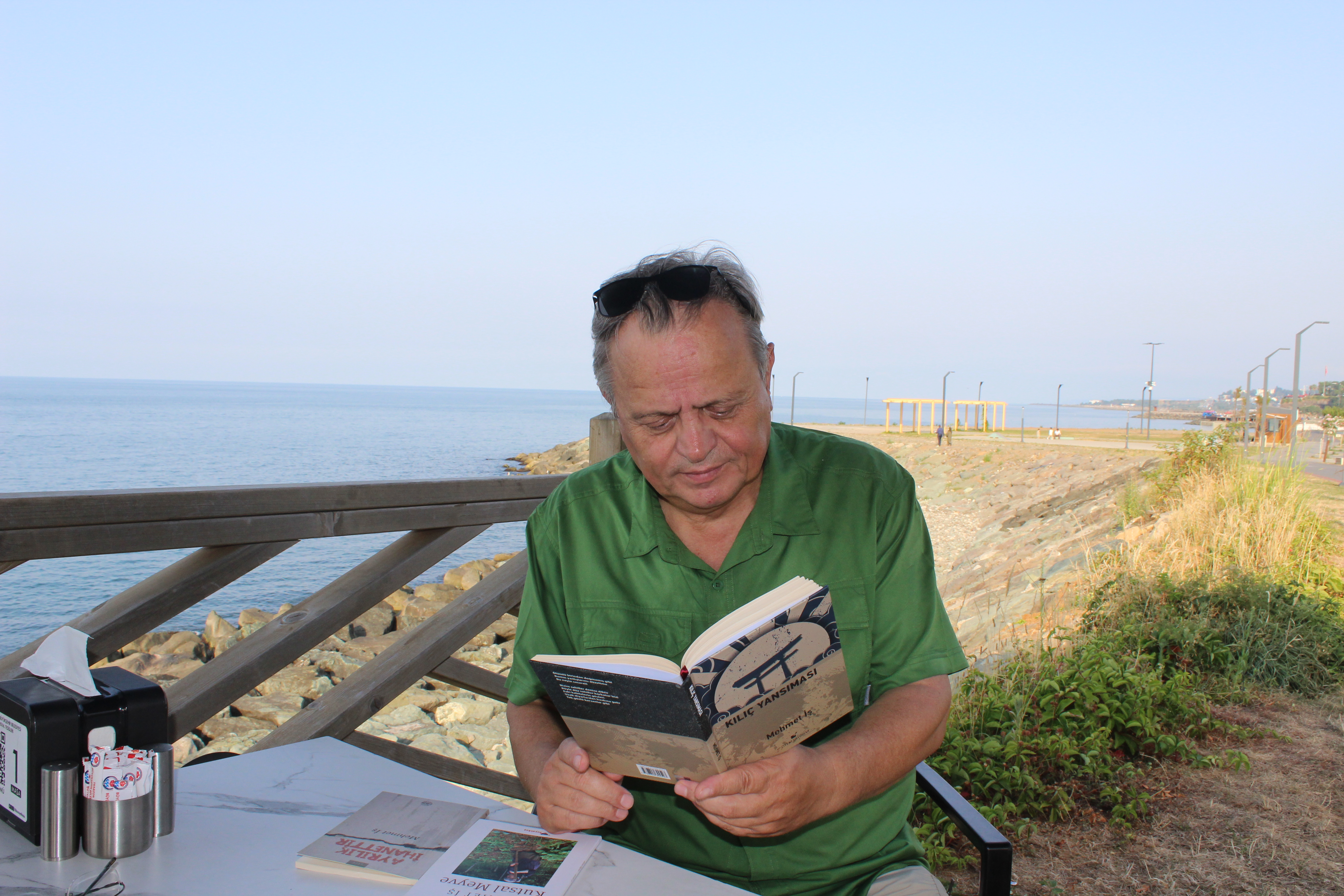 “Evet, ‘Kılıç Yansıması’ adlı şiirimde pandemi döneminde uzun zaman sonra bir gece vakti Trabzon’a geldiğimde gördüğüm bir manzaradan ilham aldım. Ganita’nın ışıkları gece denize bir KILIÇ YANSIMASI gibi saplanmış, denizi yararcasına yansıyordu. Bence bu görünüm, katledilen tüm kıyılarımızın günahının yüreğimize saplanmış bir kılıç şeklinde, röntgenlerimizde bir ışık demeti gibi görünerek içimizi hep kanatacaktır. Doğanın asla yenilmeyeceğinin imgesi olarak KILIÇ YANSIMASI şiire adını veren dizenin kıvılcımı da o an parladı. Kıyıları ve sahili yok ettik ama Trabzon’un trafik sorununu çözdük diyebilir miyiz? ( Not: Karadeniz Sahil Yolunun bir bölümünü yapan şirketlerden birisinde ben de o dönem genç mühendis olarak 10 yıl çalıştım ! ) Şiir şöyle:
