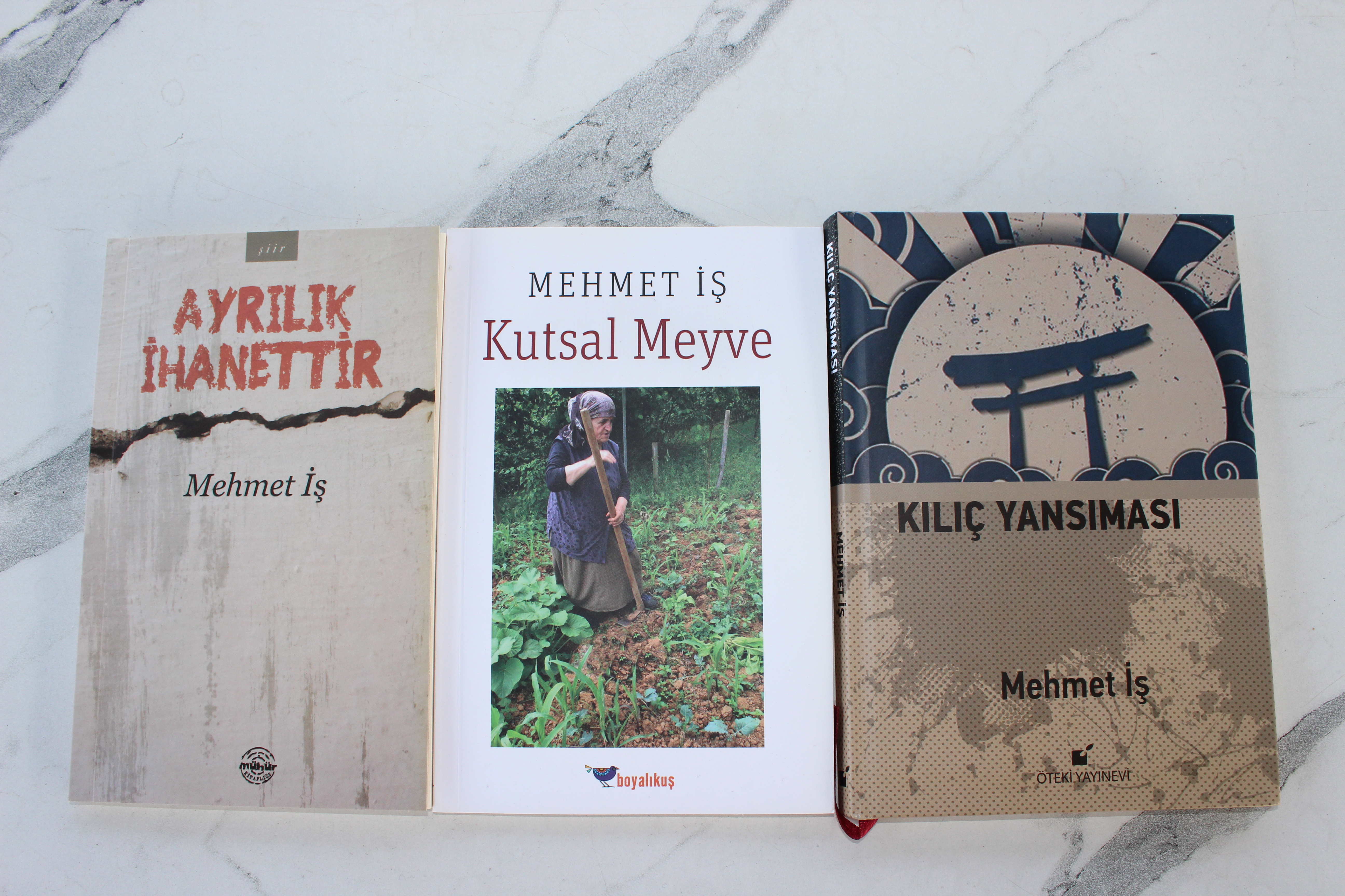 “Şiir, şairin dertlerini dile getirir” diyen Mehmet İş, şiirlerinde okuru bu dertlere ve duygu dünyasına ortak ediyor; çocuğunu kaybeden bir babadan babasını kaybeden bir oğula, ölümle burun buruna yaşayarak ölümle sınanmaya, kan davasından yetim yaşamlara, doğaya yapılan kıyıma, yanlış anlamalarla öldürülmüş sevgilere, ayrılıklara, kavuşmadaki sevinçlere, bilinçsiz yöneticilerin yol açtığı felaketlerden ülkesi için toprağa düşmüş şehitlere kadar değişik konuları barındırıyor. İnsan ve insan olmanın gerekliliklerini sorguluyor...” Alıntı: Kutsal Meyve (Boyalıkuş yayınları-2019) adlı şiir kitabının arka kapak yazısından.