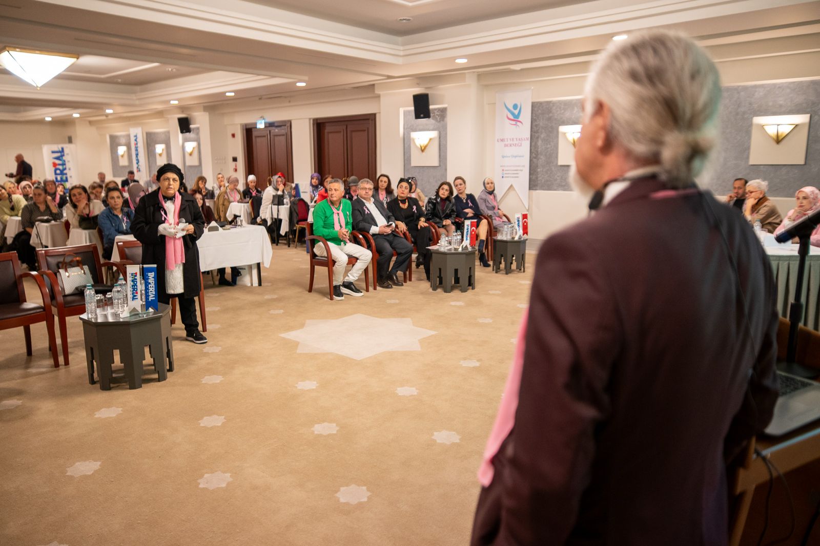 Umut ve Yaşam Derneği Yönetim Kurulu Başkanı Dr. Nimet Baki "Her dört dakikada bir kadın meme kanserine yakalanıyor. En fazla çalışılan kanser türü, yüzde 95 kurtulabilen bir kanser türü. O bakımdan şanslıyız. Oysa erken teşhis edildiğinde son derece tedavi edilebilir bir hastalık" dedi. Toplantının ardından canlı müzik eşliğinde eğlenceli vakit geçiren hastalar, renkli görüntüler oluşturdu.