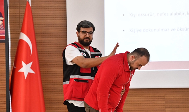 Eğitimde ilk yardım konusunda bilgi veren Kızılay İlk Yardım Uzmanı Hamza Zengin, temel acil müdahalenin sadece sağlıkçılar tarafından değil bütün sağlıklı bireyler tarafından uygulanabileceğini söyledi. İlk yardımın koruma, bildirme ve kurtarma olmak üzere üç temel süreçten oluştuğunu belirten Zengin, solunum yolu tıkanıkları, bilinç bozuklukları, yanma, donma, kanama, sara krizi gibi acil durumlarda yapılması gerekenler konusunda bilgi verdi. Zengin, boğaza cisim kaçması ve nefes yolunun tıkanması gibi durumlarda hayati önem taşıyan Heimlich manevrasını uygulamalı olarak gösterdi.