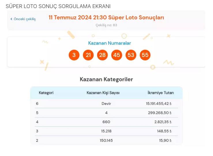 Süper Loto, şans oyunu tutkunlarının her hafta merakla beklediği çekilişlerden biri. Bu akşamki çekiliş de büyük bir heyecanla izlendi ve sonuçlar açıklandı. Şimdi, Süper Loto bileti alan vatandaşlar bilet sonuçlarını sorgulamak için ekran başına geçti. Bilet sonucunu öğrenmek için aşağıdaki sorgulama ekranını kullanabilirsiniz.
