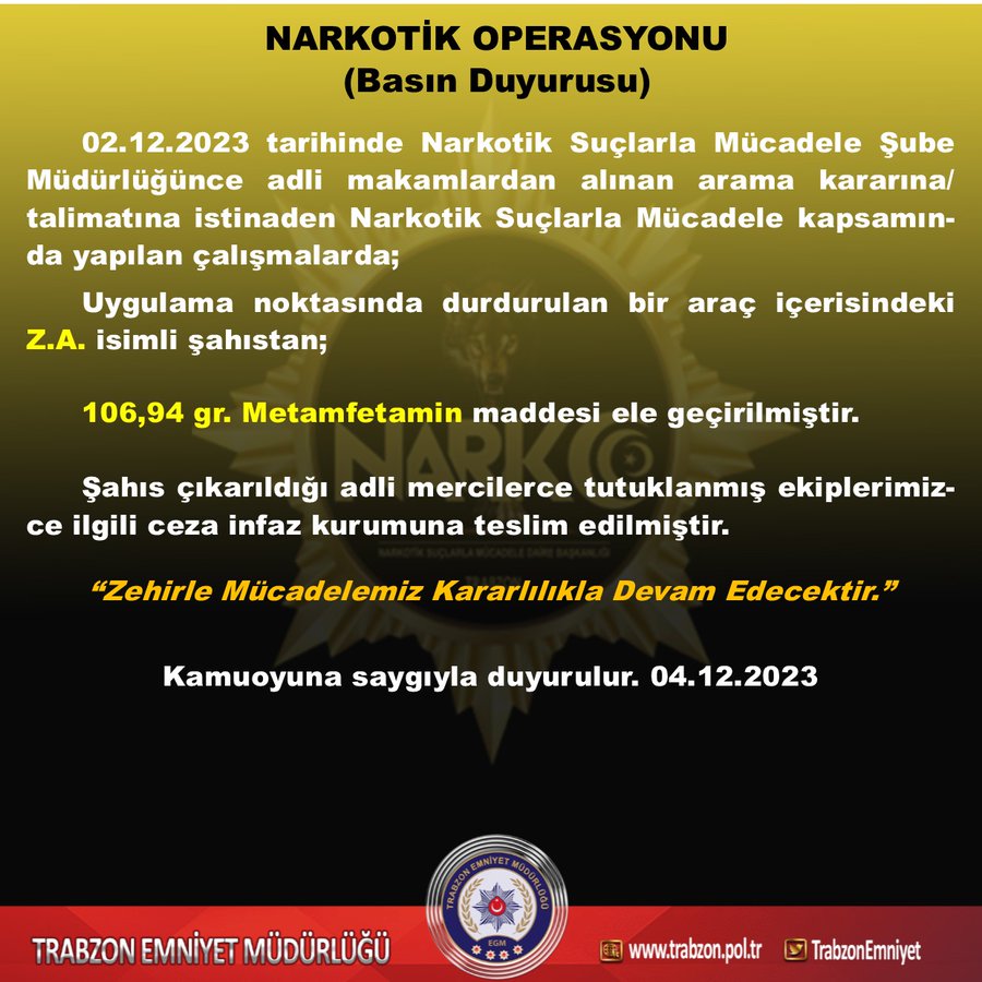 Trabzon Emniyet Müdürlüğü sosyal medya hesabından paylaştığı bir gönderi de şu ifadeleri kullandı;