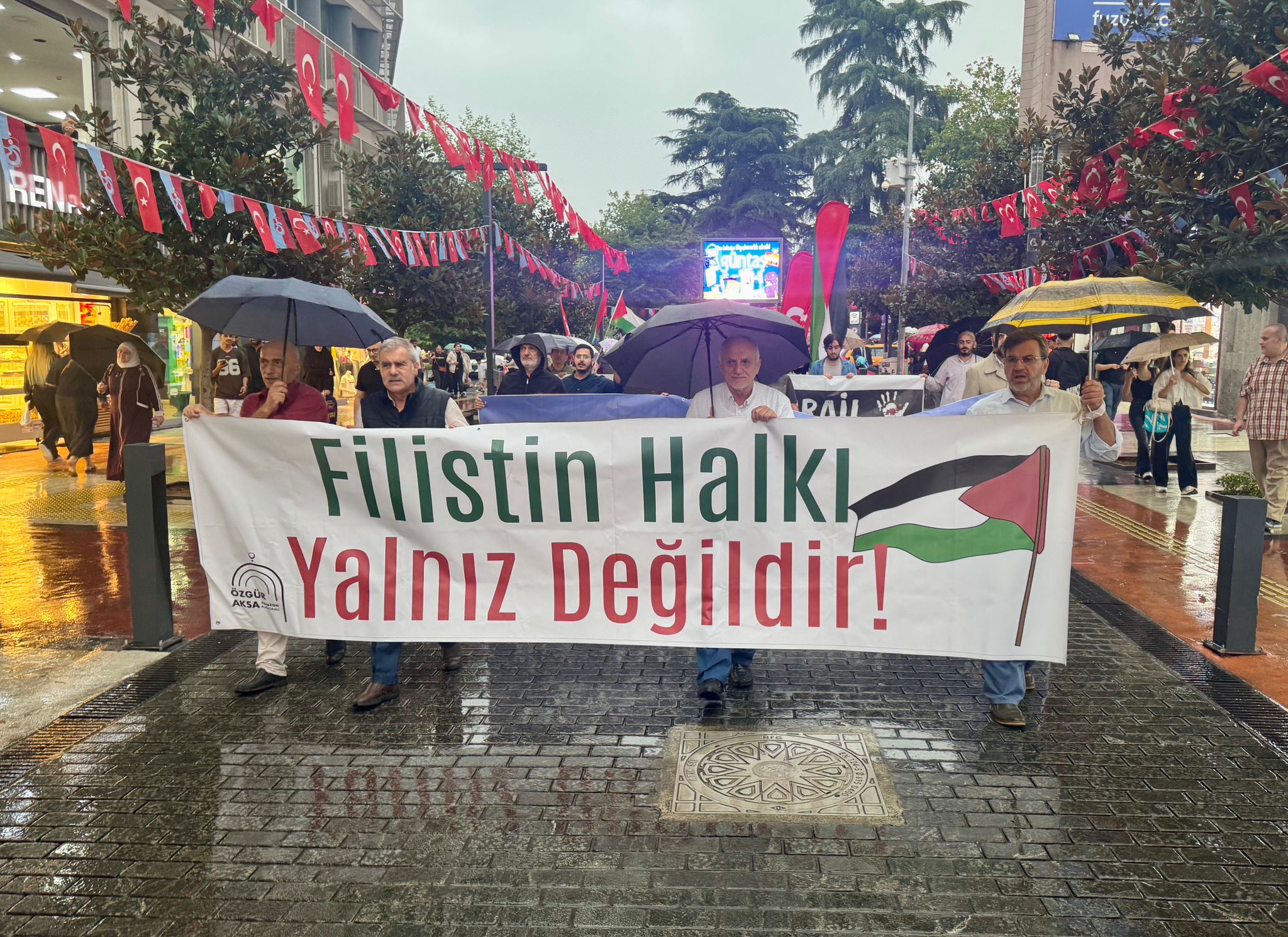 Trabzon'un Ortahisar ilçesinde Filistin'e destek yürüyüşü gerçekleştirildi. Atatürk Alanı'ndaki İskenderpaşa Camisi önünde bir araya gelen Özgür Aksa Trabzon Platformu üyeleri, sloganlar eşliğinde Kahramanmaraş Caddesi'ne yürüdü. Türk ve Filistin bayrakları taşıyan grup adına açıklama yapan Zühtü Kalma, Filistin'deki zulme sessiz kalmayacaklarını belirterek, "Unutmayalım ki sessiz kalmak ve kayıtsız davranmak sadece başkalarının değil, kendi vicdanımızın da ölümüne yol açar." dedi. Grup, dua edilmesinin ardından dağıldı.