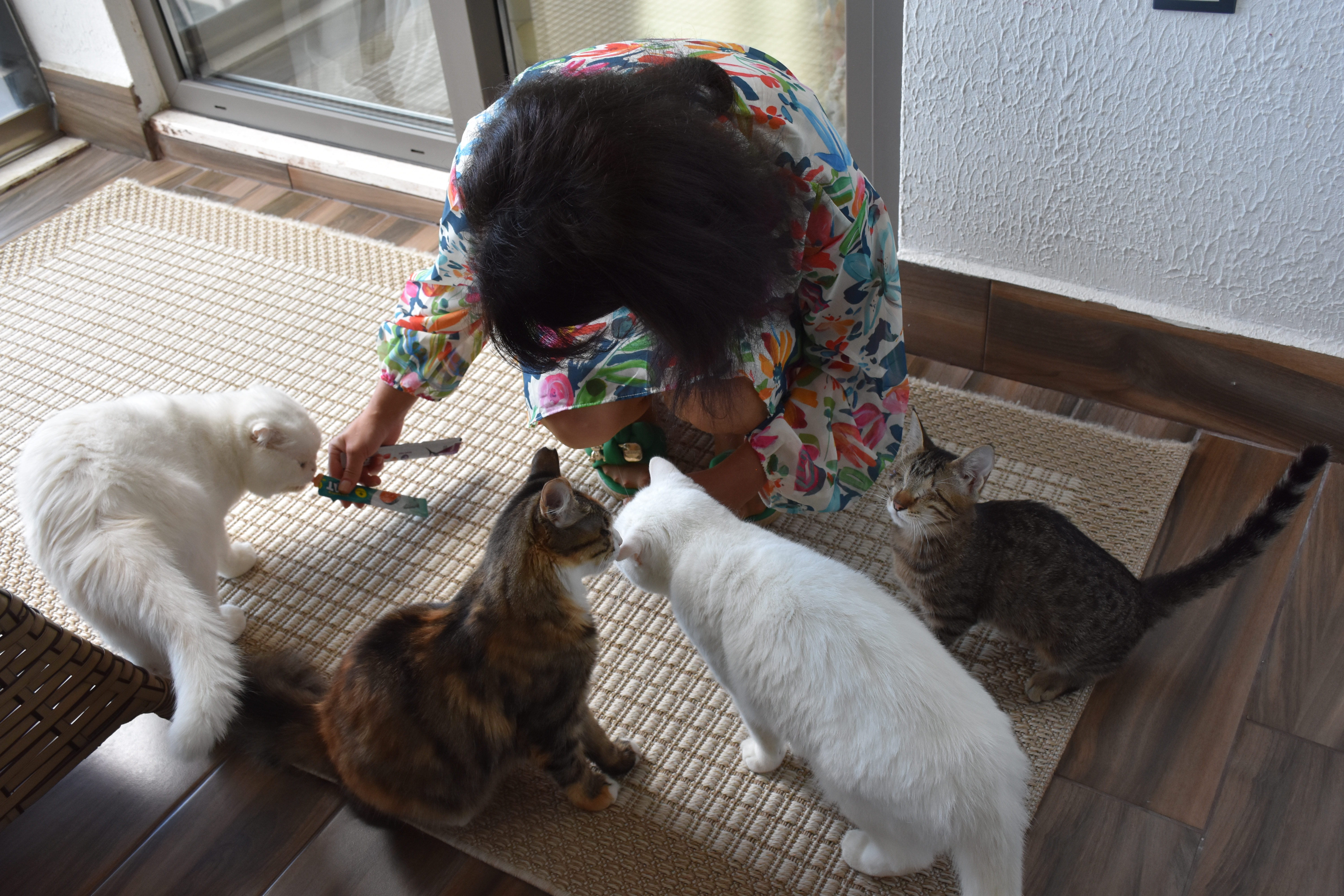 Özkan, kedilerle ilgili tereddüt yaşayan yakınlarının da zamanla bu duruma alıştığını belirterek, "Kedilerin temiz, kendilerine zarar vermediğini, aslında kendi hallerinde canlılar olduğunu görünce sıkıntı olmuyor. Onlar da alışıyor. Kedi fobisini yenen çok oldu. Ön yargıyla yaklaşan, dokunamayan, tutamayanlar artık kucağına alıyor." diye konuştu.