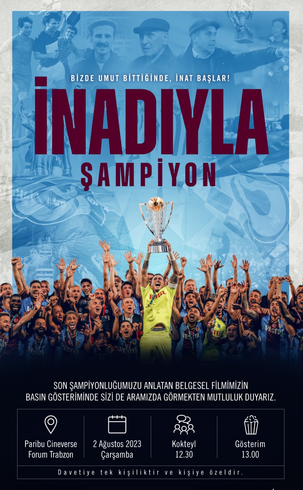 "İnadıyla şampiyon" adlı belgesel filminin basın gösterimi, 2 Ağustos Çarşamba günü 13.00'te Forum Paribu Cinverse sinemalarında gerçekleştirilecek.