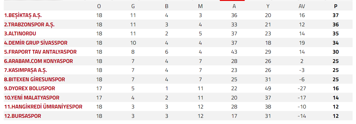 LİG SIRALAMASINDA GERİLEDİ