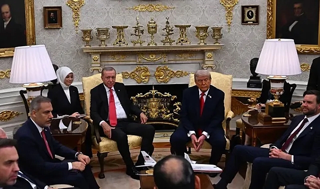 Cumhurbaşkanı Recep Tayyip Erdoğan, ABD Başkanı Donald Trump ile bir araya gelmek üzere 6 yıl sonra Beyaz Saray'a geldi. Trump, Cumhurbaşkanı Erdoğan'ı kapıda karşıladı. İki lider, daha sonra Oval Ofis'e geçerek gazetecilerin sorularını yanıtlarken toplantıya Trump'ın Suriye'ye ilişkin açıklamaları damga vurdu.