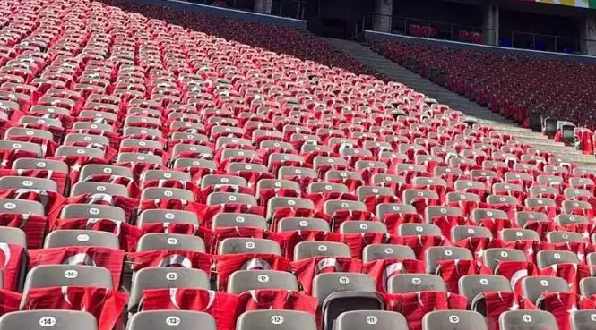 Berlin Olimpiyat Stadı, Hollanda-Türkiye maçına hazır. Maç öncesi tribünler bayraklarla donatıldı.