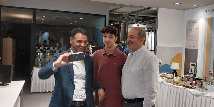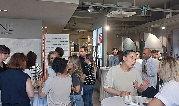 Mağazanın açılışında ünlü şef Arda Türkmen de yer aldı. Türkmen, T-ONE'a ait porselen tezgahın tanıtımını yaparken, bir poğaça tarifi de vermeyi ihmal etmedi.
