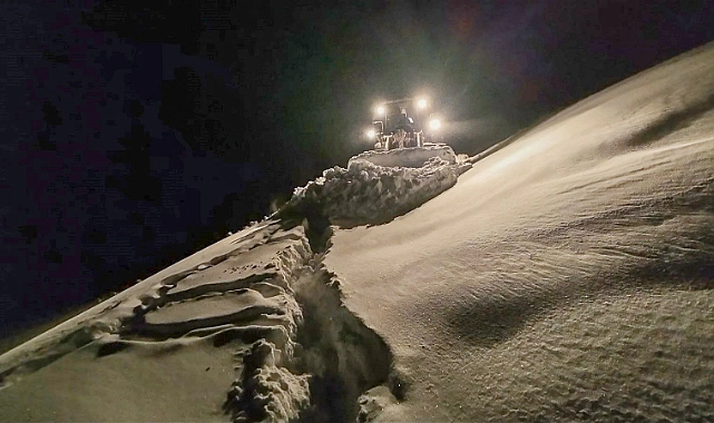 Trabzon’un Maçka ilçesine bağlı Yüzüncü Yıl Mahallesi Lapaza Yaylası'nda yoğun kar yağışı nedeniyle koyunlarıyla birlikte mahsur kalan baba ve oğlunun imdadına Büyükşehir Belediyesi ekipleri yetişti. Hayvancılıkla uğraşan Nurettin Bekar ve oğlu Sabri Bekar, aniden bastıran kar yağışı nedeniyle bin 200 koyun ve 7 köpekle birlikte Lapaza Yaylası’nda mahsur kaldı. Cep telefonunun çekmediği ve kar kalınlığının bir metreyi aştığı 2 bin 200 rakımlı yaylada çaresiz kalan baba-oğul, telefonun sinyal aldığı bir tepeye güçlükle ulaşarak durumu muhtar Selahattin Büyükkara’ya bildirdi. Muhtarın bilgi vermesi üzerine harekete geçen Trabzon Büyükşehir Belediyesi Yol Yapım, Bakım ve Onarım Dairesi Başkanlığı ekipleri, 6 saat süren yol açma çalışması sonucunda mahsur kalan baba-oğula gece yarısı ulaştı. Ekiplere teşekkür eden Sabri Bekar, "Zor anımızda imdadımıza yetiştiler. Eğer geç kalınsaydı koyunlarımız telef olabilirdi" dedi. Muhtar Büyükkara da özverili çalışmalarından dolayı Trabzon Büyükşehir Belediyesi ekiplerine teşekkür etti.